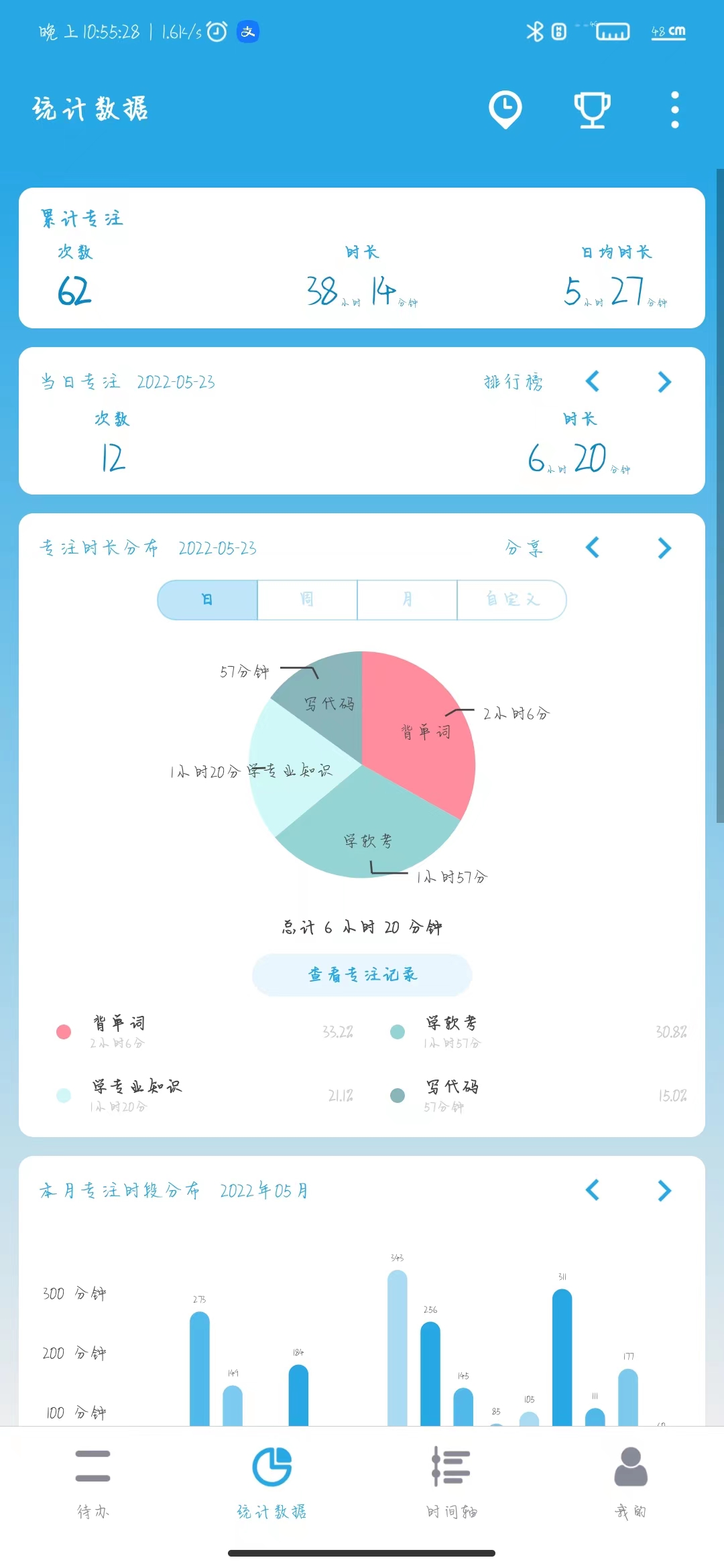今天状态一般,没有昨天好。有点懒散。早上起来还好,然后上午前半段状态不行,后半段状态不错。到了下午不知道是没睡好还是咋样,就没啥状态了,很烦躁,静不下心来。晚上稍微好一点。不过总的来说,还是比前几天状态好一些的。毕竟有效学习时间在那摆着,说明我的平均专注水平还是有提升的。